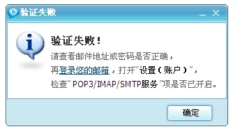 当创建汇讯邮局邮件账户时候,出现验证失败的提示,如下图,