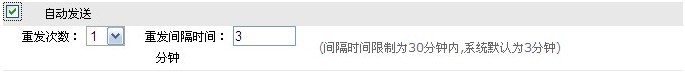 自动发送 用户在此设置重复发送以及从发时间间隔,如图所示: